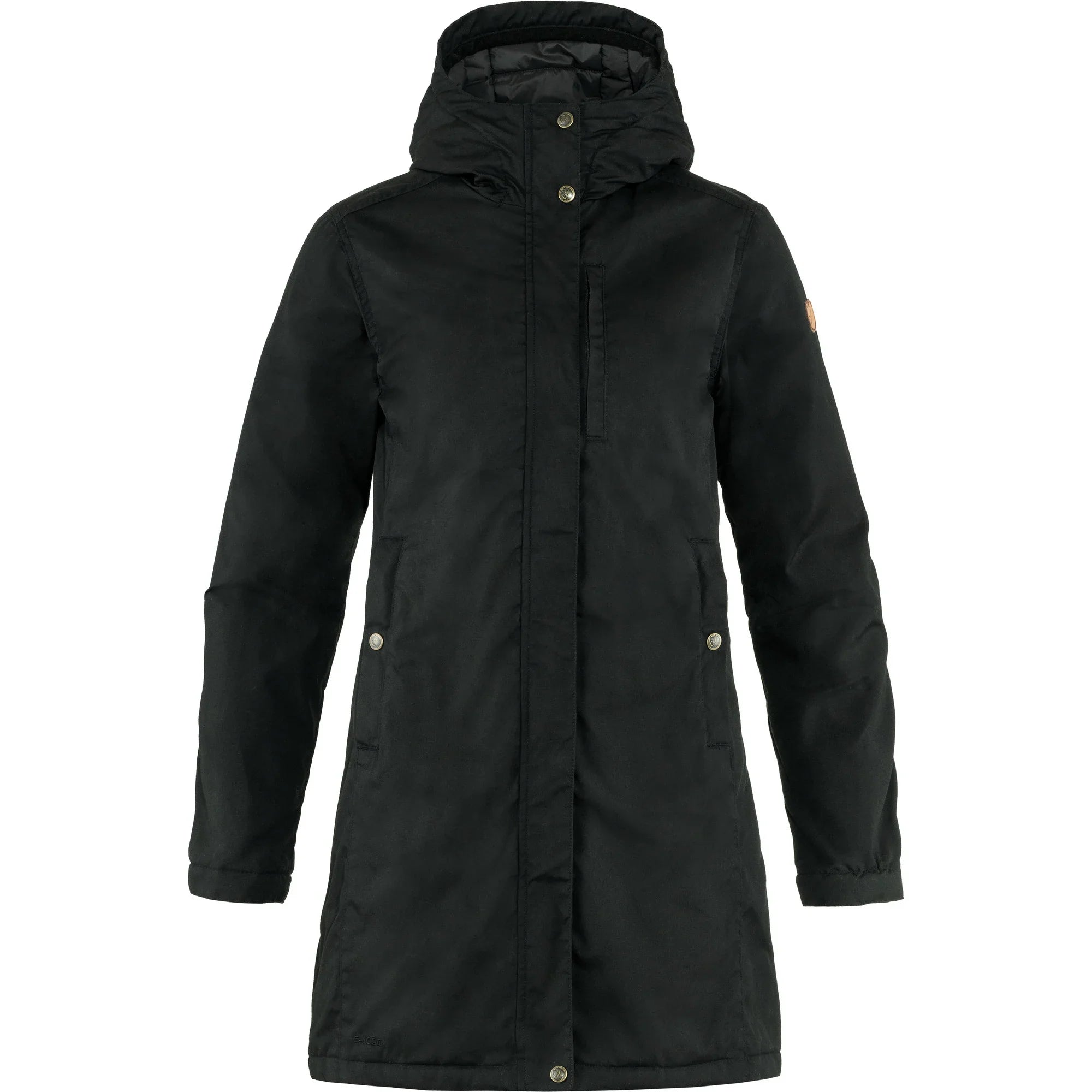 Long, lightly padded everyday parka with fixed, adjustable hood. Made from durable G-1000 Original that resists wind and rain, with a recycled polyamide lining. The synthetic padding PrimaLoft® Black Insulation with P.U.R.E. Technology gives extra warmth, even in damp conditions. Perfect as an everyday jacket during the colder months of the year, and the hardwearing outer fabric makes it suitable for forest walks as well. The model is long for warmth over the rear and thighs and the front zipper is two-way, with a protective flap on both the inside and outside to stop cold winds. There is a chest pocket and two hand pockets, all with zippers. The waist can be adjusted with buttons at the back. Adjustments with press buttons at sleeve cuffs. The jacket can be impregnated with Greenland Wax for added protection against wind and rain.
