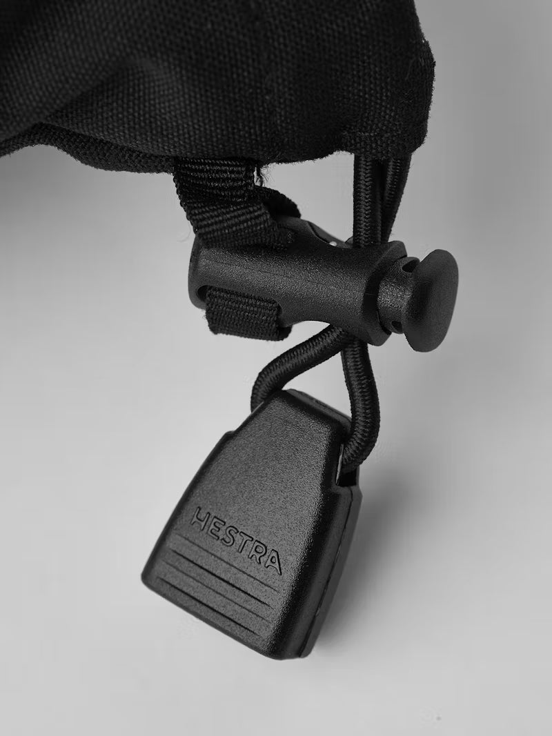 Hestra's Army Leather Heli Ski was originally created for ski guides in western Canada who needed a reliable and warm ski glove for long, cold days in the snow. This 5-finger women's glove has a slimmer cut to fit women's narrower hands but is sewn in the same hardwearing, weather-resistant combination of goatskin leather and 3-layer polyamide fabric as the men's version. A range of smart functions come in handy when you can't head indoors to warm up that often. For example, the liner is easy to remove and dry, or replace with a thinner inner glove when hiking uphill. In powder snow, the long cuff with snowlock and wrist adjustment keep the snow on the outside. A wrist strap reduces the risk of dropping a glove if you take it off to adjust your equipment or use your phone. And the included carabiner means you can hang the glove up with its opening facing downwards – practical to avoid it filling up with snow while you're wearing just a thinner liner. A durable, flexible companion for skiers that spend a lot of time outdoors and who often find themselves far from the ski resort and its comforts.